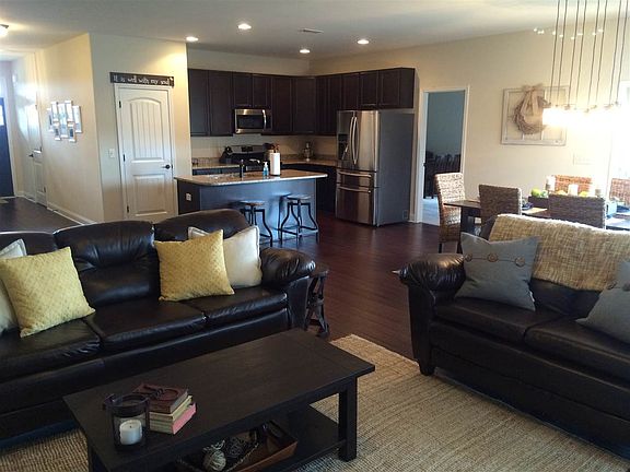 Why take time to build when you can have a new home right now? You will love the open feeling of The Oakland, a one level +1900 square foot home in the popular community of Stone Pond. The kitchen, dining and living areas share one large open space, which would be great for social gatherings. Granite counter tops, stainless steel appliances, gas cook top stove, island counter and large pantry are just a few great features in this beautiful kitchen. Dark bamboo hardwood floors cover this area as well as the hallways leading to the bedrooms. A corner stone natural gas fireplace will help light up the room and keep the winter chill off and look pretty unlit for the rest of the year. The dining area is spacious and can accommodate any size table you like. Exit the patio door near the dining area onto a covered grilling deck. The entire back wall of the home has windows that look out onto fields. A carpeted bonus room sits right off the kitchen and would be great used as an office space, reading room, storage area, or as an extra sleeping space. Three bedrooms are on the opposite side of the great room, with the master bedroom and bathroom separated from the two guest rooms. All three bedrooms are carpeted and have walk-in closets of varying sizes. The master bedroom has double sinks, a large bath tub, a separate shower and plenty of room to hang your clothes. Browns and earth tones will make this lovely home easy to furnish and decorate. The current owners are moving to Alaska and have enjoyed the home for only six months. This home won't be on the market for long!