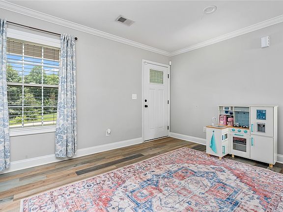 Just a mile away to Portman Marina and conveniently located near exit 14 on Highway 85, you'll find a charming, 1 story like-new 3-bedroom, 2-bath home. As you enter, you'll immediately notice the vaulted ceilings in the living room, creating a sense of spaciousness. The semi-open layout connects the living room to the kitchen, enhancing the open and airy feel while maintaining a warm and cozy atmosphere. The kitchen is a true highlight, boasting beautiful granite countertops, elegant white cabinets, and stainless steel appliances. It's not just a functional space, but a place to enjoy your culinary adventures. Adjacent to the kitchen, there's an inviting eat-in dining area, perfect for gathering with family and friends.