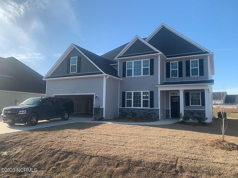 Welcome to the highly desired & popular community of Onslow Bay. Brand new construction built by Onslow County's most trusted & preferred builder, featured in Builder 100/ Top 200 Builders in the country. Onslow Bay is a hot spot, 3 miles to MCB Camp Lejeune's Piney Green gate, 14 miles to New River Air Station & minutes to area schools, shopping & dining. This beautiful neighborhood is sure to impress, complete with a clubhouse area & community pool. Welcome to the Laura E 3317. Total 5 bedrooms, 4.5 bathrooms. Approx. 3317 heated square feet. The charming front porch awaits your hanging baskets and a welcome mat. Enter through the impressive 2-story foyer. 13x14 formal dining room. Very open main level with 15x22 family room accented by a ceiling fan & a fireplace with custom mantel. Beautiful kitchen features flat panel, staggered cabinets, an island and stainless-steel appliances to include smooth top range, dishwasher and built-in microwave. 10x11 breakfast room. Main level master with a walk-in closet and elegant master bath makes for a great guest room. Second floor also features a true 15x19 master bedroom with a sitting area, walk-in closet and a grand master bath. Master bath has separate vanities, separate shower and soaking tub. Bedroom 2 is a big 13x14 with a walk-in closet. Bedrooms 3 & 4 share an attached bathroom. Upstairs laundry room. This popular plan should accommodate everyone. 2 car garage and a cozy covered back porch. Call Today. NOTE: Floor plan renderings are similar and solely representational. Measurements, elevations, and specs may vary in final construction. All selections have been ordered, no selections or changes can be made. Call L/A to verify.