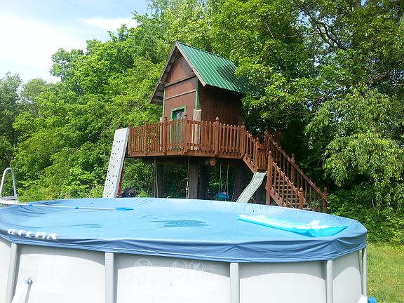 This property is one that you have to see! The 1800+ sq ft, 3 bedroom, 2 bath house sits on more than 3 acres and backs up to many acres of woods. The split-bedroom design provides lots of space for a family. The master bath has a new jetted tub, stand up shower, and double sink. A large front porch provides incredible views after a long days work! The small above ground pool provides cool comfort in the summer and the playhouse can be enjoyed by kids and adults alike! The brand new storage building provides lots of outdoor storage.