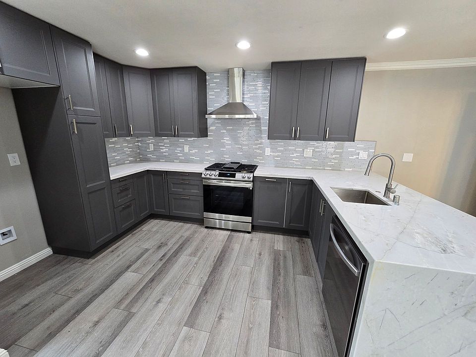This beautiful brand new 2-story ADU unit in Fullerton (Sunny Hills), completed in late 2023. Unit features 2 Bedrooms, 2.5 Bathrooms and 1,168 square feet of living space. "Wood look" vinyl plank flooring throughout except for bathrooms, which have ceramic tile. Downstairs features large open floor plan living/dining room & kitchen with recessed lighting, ceiling fan, mini split HVAC, half bath and under stair storage. Kitchen features quartz counter tops, ample dark cabinetry, new stainless steel range/oven with hood cover, new stainless steel dishwasher, sink and fixtures. Upstairs features hallway with space for a workstation and access to 2nd floor balcony/patio as well as the bedrooms and separate laundry room. Master suite features mini split HVAC, recessed lighting, ceiling fan, large closet, sliding glass door access to balcony/patio and it's own full bathroom. Master bathroom features another large closet, dual vanities, all new fixtures/cabinetry, toilet and shower with glass door. Second bedroom includes large closet, mini split HVAC, ceiling fan and it's own full bathroom featuring new fixtures/cabinetry, toilet and shower with glass door. Automatic security gate entrance to parking (this unit will feature 2 uncovered parking spots). Tenant(s) responsible for all utilities.