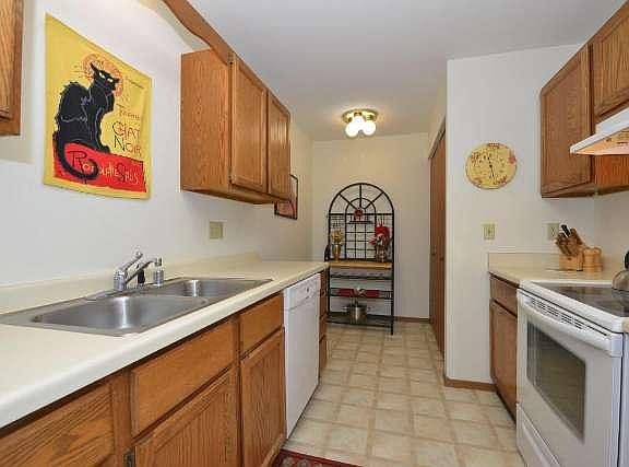 Lake view first floor end unit. Relax on Patio overlooking the water. Fresh updated paint, carpet. MBR with private Bath. Attached private Garage. In unit Laundry. New flooring, disposal, some windows, newer range. LR with GFP and Patio Doors. All appliances. Easy living. Walk to dining, parks, shopping. Well maintained and managed Association.