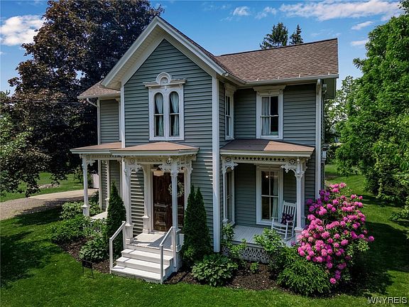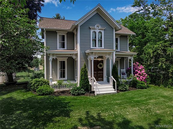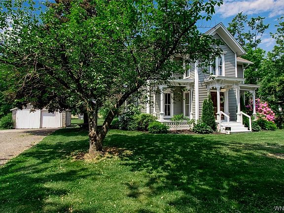 Pride in ownership is evident as you enter this stunning 1850 Cira Victorian home. The main entrance features a lovely enclosed porch that is perfect for enjoying your morning coffee & is conveniently located off the kitchen. The kitchen offers a charming banquette eating area, cozy reading nook, breakfast bar, updated cabinets, new large picture window, stainless appliances, insulation, ceiling, lighting & custom pantry. The front foyer showcases beautiful, solid wood doors which open to a formal dining room, spacious living room/parlor, family room & half bath. This property boasts refinished wood floors throughout, natural woodwork, pocket doors, wainscoting, remodeled baths, soaring ceilings, first floor laundry & an attic which can be utilized for additional living space, if desired. Brand new hot water tank, electrical & freshly painted interior. Enjoy the tranquil setting, gorgeous landscaping & well maintained 1.2 acre lot while you relax on the first floor enclosed porch, open porch or the second floor sleeping porch! Two-car detached garage with new wiring & lighting. Garden shed, original outhouse & 12 x 24 work shop with a wood burning stove. Offers due 6/19 by 3pm.