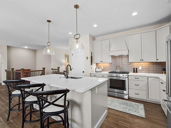Stunning, executive home in the desirable Villages at Sandfort Farm! This move-in-ready, 4 BD, 3.5 BA, ranch has nearly 4,000 s/f of smart, on-trend living space. This like-new, 2 yr old home has been impeccably maintained and incredibly improved. The ext is elegant with a large porch, carriage style gar doors, arch shingles, triple dormer accent, spectacular landscape, comp deck and lawn irrig. Features of this split-bdr plan inc 9 ft clngs, frml DR, eng wood flrs, island w/brkfst bar, 42 inch cab w/crown, U/C lighting, Kitchen-Aid gas range, tile b-splash, quartz c-tops, Fisher and Paykel D/W, drawer micro, SS refrig, gas FP, W/I closets in every bdr, Lux Mast Bath, cust shower with tile to clng and more. The finished LL is dynamic with a large FR, Rec Rm with a rustic bourbon vibe, bath, office and bdr. The LL walks out to a private covered and open patio overlooking the fenced yard. Enjoy the neighborhood pool, walking trls, playground, easy access to Hwys 70-370-364. It’s a WOW!