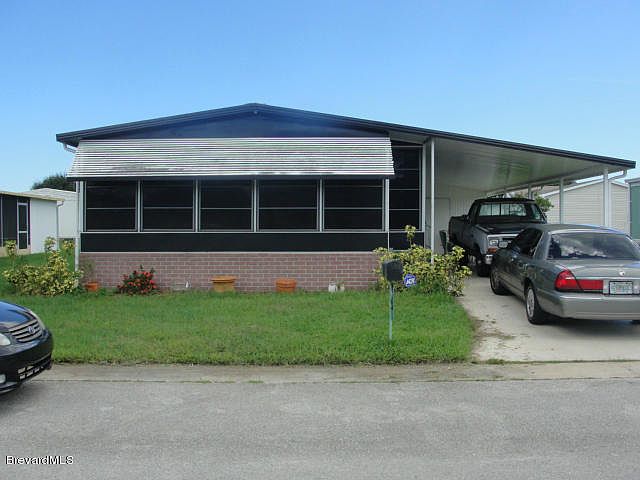 Cute and spacious 2 bedroom, 2 bath mobile home located in the 55+ community convenient to shopping and restaurants. Open floor plan and large enclosed porch in the front. Carport and utility shed for extra storage. Nice community with pool, clubhouse and shuffleboard too.