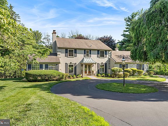 Seller is asking for all offers by Sunday July 16th at 5:00 pm. This sunny and spacious French colonial is located on a leafy cul-de-sac, featuring a sprawling, tree-lined lot and a flexible interior with options for an additional bedroom and upstairs bonus suite. A circular driveway leads to a covered entry with full-pane double glass doors. The freshly painted main level boasts hardwood floors and abundant natural light. Just off the foyer sits the warm and welcoming living room with a wood-burning fireplace and French door access to a glass-enclosed three-season room. To the right of the entrance is a formal dining room with custom moldings and lovely front yard views. Tucked behind the living room is a cozy first-floor office that could easily function as a fifth bedroom if desired. Adjacent to the office, you’ll find a large closet and a full bathroom. The other side of the main level features a large eat-in kitchen with a center island, a double wall oven, new stainless steel appliances and plentiful cabinetry. The kitchen spills into a breakfast room with a built-in hutch and an oversize picture window framing the scenic backyard vistas. The other side of the kitchen opens to a gracious family room with a beamed ceiling, a wood-burning fireplace, and a stone accent wall. From there is another French door that leads to a large composite deck with step-down access to the lush backyard. Other main floor highlights include a laundry-mudroom area that connects to a 2.5-car garage with a storage system and composite flooring. Upstairs, the primary suite includes an ensuite full bath and four(!) closets. This floor also houses an updated full hall bath with double vanity and three secondary bedrooms, one of which connects to a bonus room that could be converted to a home office, gym, or lounge space. Downstairs, the partially finished basement features walk-out access to the private, landscaped backyard, complete with a pool, stone retaining walls, and plenty of mature trees and plantings. New gutters and new sunroom windows installed in 2022. The home’s central location brings the area’s top attractions and conveniences to your doorstep, including downtown Wayne, King of Prussia Mall & Town Center, Valley Forge National Park, and public transit. Make plans to tour this Main Line treasure today! Updated photos of new appliances, mudroom and finished lower level will be online early week of July 10th.