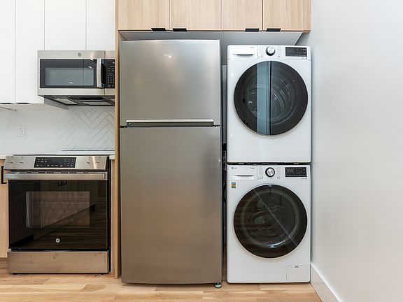 Discover an incredibly spacious, brand new 1-bedroom apartment and in-unit laundry, available with no fee. Located in prime Williamsburg, just steps from McCarren Park, this stylish new development is bathed in natural light and loaded with high-end features: In-unit laundry Hardwood floors Central A/C Private balcony Roof access Outdoor space Stainless steel appliances Stone countertops Video intercom Sun-drenched living area