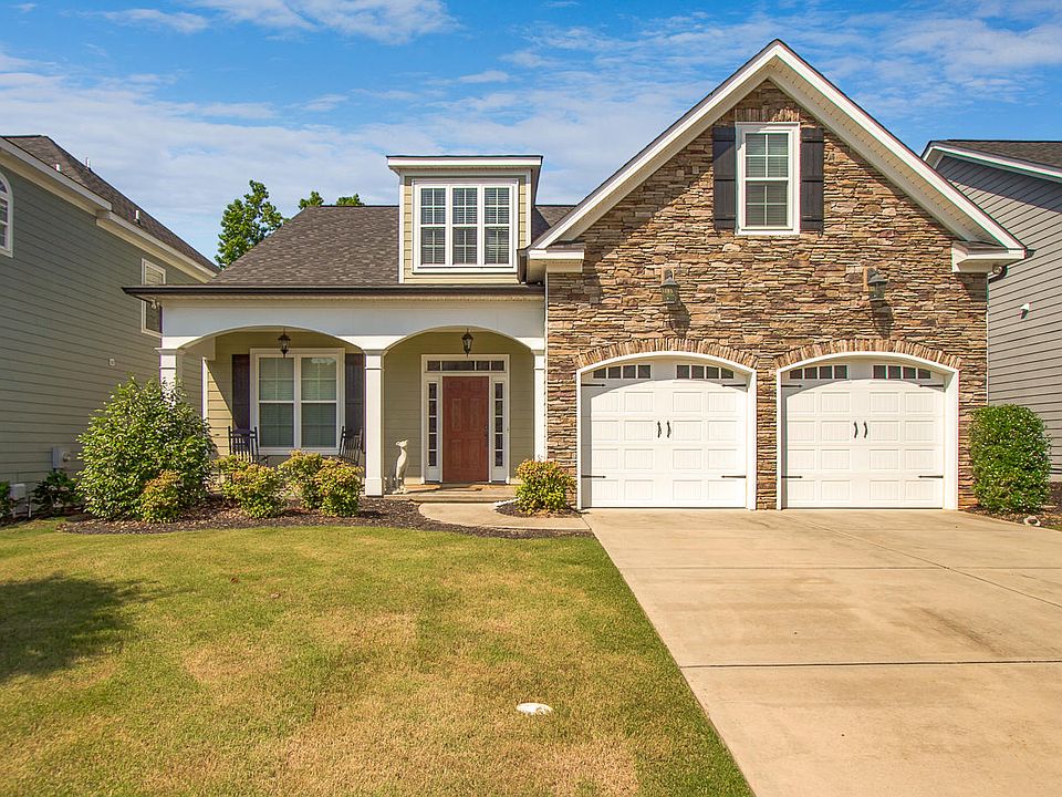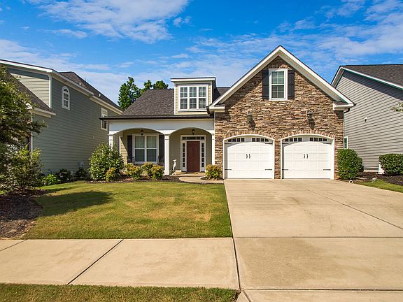 Beautiful one owner home in popular Columbia County community built by GLS Builders. Attractive hardy plank and stacked stone exterior with rocking chair front porch.Open floor plan featuring 4 bedrooms, 3 full baths and tons of custom features inside including, granite countertops in kitchen and all bathrooms, heavy trim work, hardwood flooring in main living areas, coffered ceiling in greatroom and barreled ceiling in hallway. Greatroom features fireplace and media built-ins. Main level master suite and private bath with large tiled shower, garden tub and large walk-in closet. Two additional bedrooms on main level with shared bath. Oversized bedroom on upper level with private bath. Covered back porch overlooking huge flat backyard completely privacy fenced and landscaped. Double car garage and conveniently located to sidewalks leading to the Savannah River. Excellent location! A must see! MASTERS RENTAL $8000