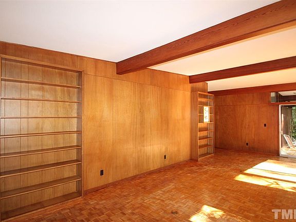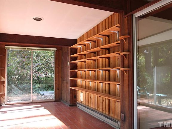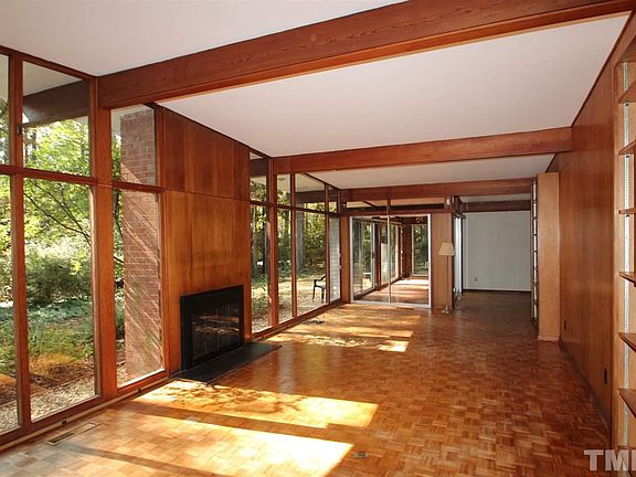 Unique, well maintained mid-century modern house designed by renowned architect Terry Waugh with original cabinetry & bookshelves. Lovely 0.82 acre yard w/ a mature garden full of azaleas and camellias. Hardwood floors throughout. Two bedrooms w/ two baths. Large family rm w/ fireplace & wall of south-facing windows.. Separate dining rm w/ great view of backyard. Large sun rm w/ windows on one wall. Large patio in back w/ garden. Fantastic neighborhood close to UNC campus & hospital. MUST SEE!