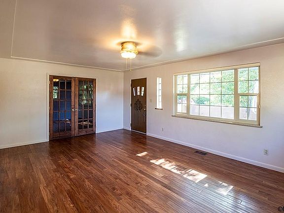 This tree draped stucco home on a quiet residential street is entered via a slate courtyard enclosed with a southwestern style wall. The large living room has French doors into the primary bedroom, both rooms w/overhead fans & lights. Laundry hookups are in a closet off the kitchen. Whirlpool appliances, tiled countertops, pantry cupboards, breakfast bar, and wood laminate flooring make the kitchen with upgraded sink faucet & quality cupboards the hub of the home. One of the two bathrooms has a trendy bowl sink on a dresser vanity and built-in storage cupboards. One of the most noteworthy features of this home is the MANY closets it has & with organizational hanging & shelving systems. Outside the back yard is entirely fenced & a one car carport abuts the one car garage. There is room for additional parking in the oversized driveway. Come tour what is sure to be a quick sale for fortunate new owners!
