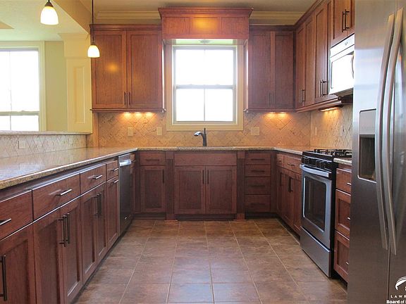 Fantastic open plan with main level master suite. Awesome bright kitchen with custom cherry cabinets & stainless steel appliance package including gas range. Vaulted living room with gas fireplace. Granite in kitchen and all bathrooms. Master suite with huge walk in closet, private bath with soaking tub and separate shower. Flex room/office with french doors off front entry. Tremendous amount of storage. Covered back patio, sprinkler system & sodded lawn. All concrete room in 3 car garage.