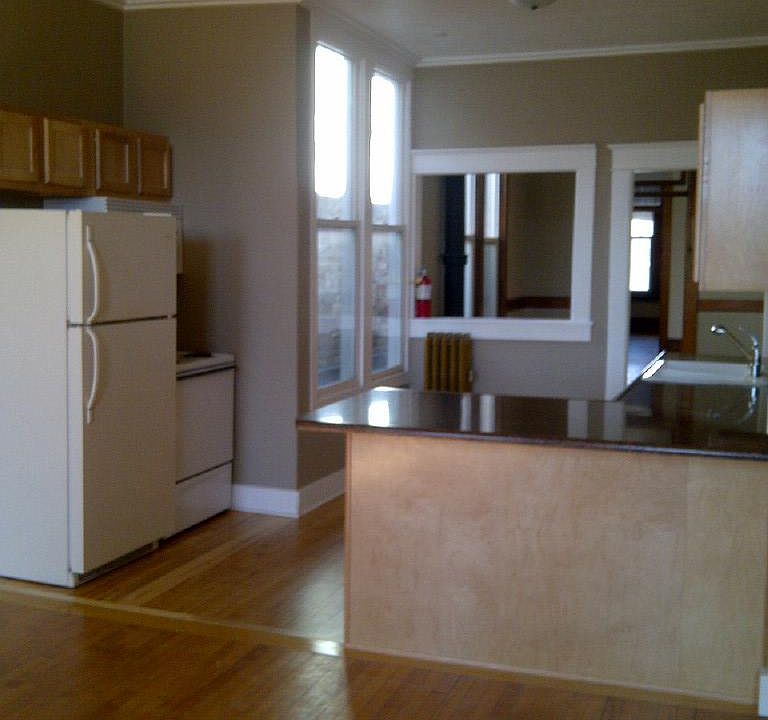 Centrally located in downtown Oshkosh Spacious apartment Laundry located in apartment High ceilings Dishwasher Hardwood floors Lots of character and woodwork 2 private entrances Off-street parking with city permit 1 cat OK with additional pet deposit Tenant responsible for electric and water, gas included in rent