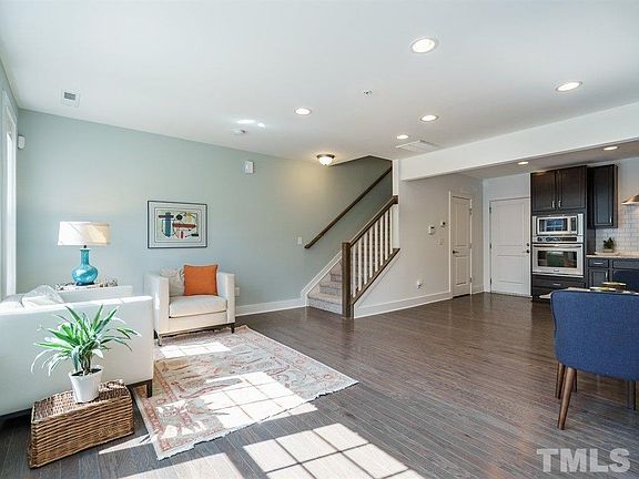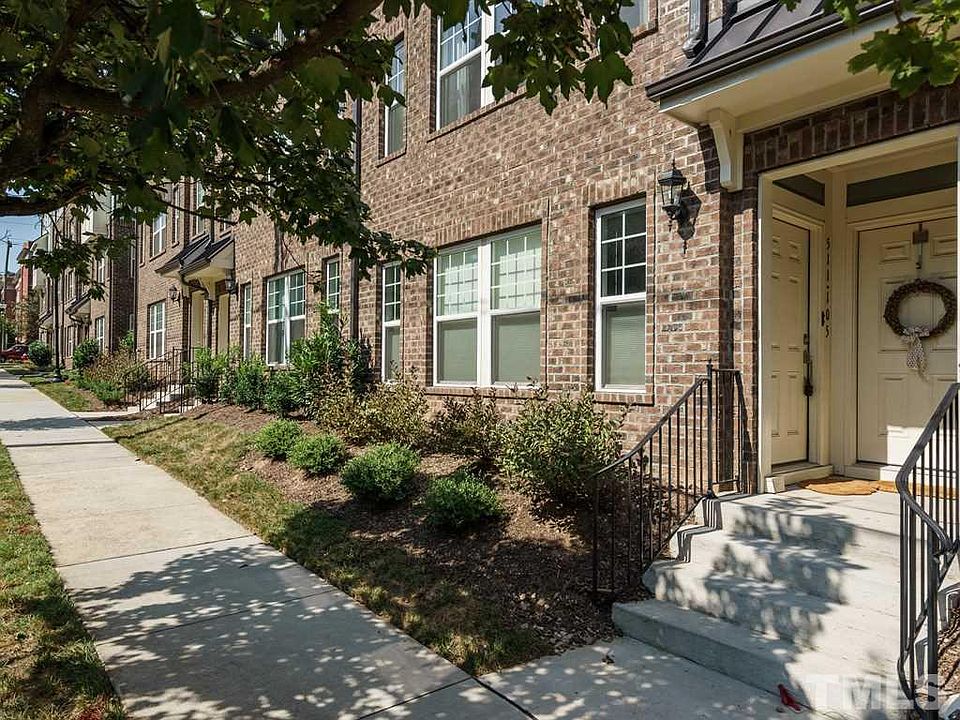 Urban Living at Blount Street Commons! Two Story Brick Condo w/ Rear Entry Garage & a Balcony View of Downtown Raleigh's Skyline! Tons of Windows, High, Smooth Ceilings & Beautiful Wood Floors! Sleek Kitchen w/ Granite Counters, Subway Tile, & Stainless Appliances. Versatile, Open Plan on Main Floor for Entertaining. 2nd Floor features Two Bedrooms plus a Den/Office with Doors to Deck Overlooking Courtyard Park & Greenspace. Walk to Neighborhood Dog Park & Local Favorites for Dining, Coffee & Nightlife!