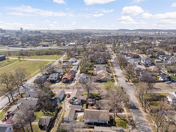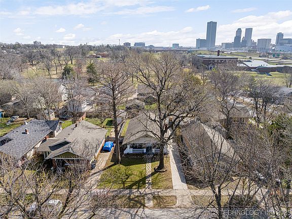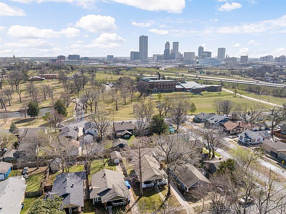 Sweet Bungalow With lots of character, featuring updated kitchen w/ Quartz countertops & stainless appliances, original hardwoods, two full updated bathrooms, plumbing & electrical updated, new water line from the city meter, great built in's. Nice size closet in the Primary and a little nook that could be a space for a small office or made into more closet space. Newer concrete driveway, cedar fence and gates, detached garage/studio with AC and new wiring. Fantastic covered front porch for entertaining plus close to everything downtown and the Gathering Place. Newer HVAC, all appliances stay. Plumbing could be added to the detached studio/office.