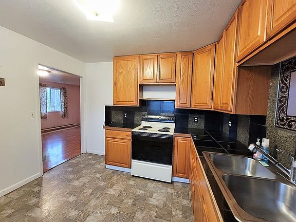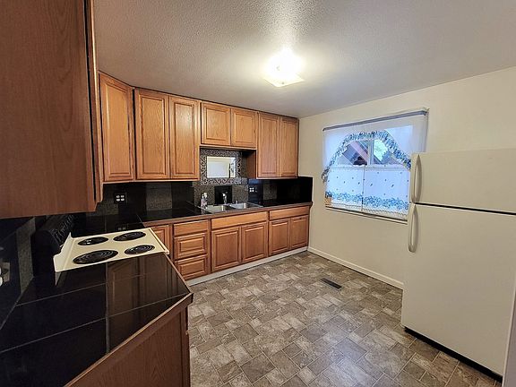 Home for sale in Glendive - 2 bedroom/ 1 bath, 1,208 sq ft (632 up/576 down) home with single attached garage on an oversized 13,040 sq ft lot. This home greets you with an enclosed front porch, an updated kitchen, newer laminate flooring throughout the living room and bedroom with a full bathroom completing the main floor. The basement has a non-conforming 2nd bedroom, storage space, a laundry area with a tankless water heater, and NGFA furnace. This home also has central air conditioning, newer windows throughout the main floor, and stucco siding. The backyard is completely fenced and has a cement pad poured for a double garage with alley access. This home is being sold AS-IS. All figures are +/- and information is deemed accurate but not guaranteed.