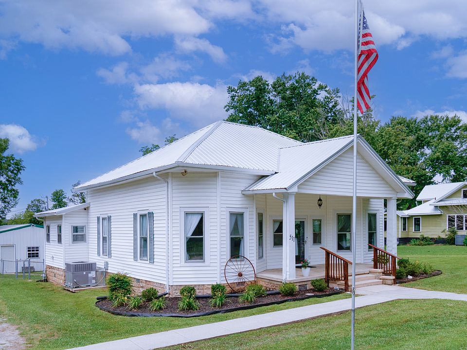 This alluring home offers original touches at every turn! New drywall and fresh paint throughout. Stainless steel appliances. The HVAC and all ductwork were replaced in 2020. The bathroom was taken down to the studs and completely remodeled. New carpet in the 3rd bedroom. Metal roof is just 5 years old. The detached garage/shop has electric, heating & air, and 220 amp. Large fenced in back yard.