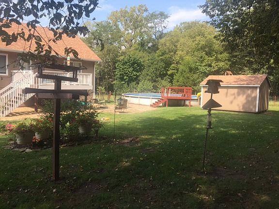 Exceptional property, private and secluded behind trees at the end of cul-de-sac, better than new home has very open floor plan with fresh paint and newer flooring through-out, upgraded trim, 9 ft ceilings, 6-panel doors, 24 x 6 covered front porch and 14 x 14 private deck where you only see woods and wildlife, 2-car oversized heated garage with drain, 14 X 12 storage shed and amazing 24 X 36 Barnmaster barn with a 12 X 36 overhang. Newer heat pump and saltless soft water tank. Roof and exterior paint two years old. Recently remodeled master bath. Huge 33 foot round swimming pool with new pump and 6 person hot tub that is two years old. Beautiful 24 X 36 Barnmaster barn with water spicket. Chicken coop in fenced in area. Well-maintained landscaping and flower gardens, plus fenced vegetable garden area for growing your veggies this summer. Well-maintained septic system. Wall of windows with views of woods. Come have fun this summer in your own backyard retreat! Low taxes!