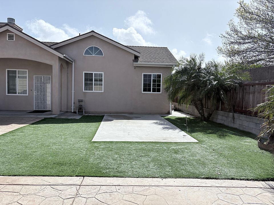 fresh painted, 2 bed + office or 3er bed, walking closet, 2 bath, AC, washer and dryer hook up , doble fire place, huge front yard and back yard, 3 parking spaces, it's the rear house with independent entry, 2 sheds, it's was built in 2008, close to restaurant , stores , school and transportation. Acept small dogs with $300 deposit. no smoking, tenants pays for electricity, gas , trash , water and maintenance front and back yard cleaning .