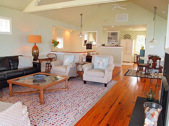 Come experience your inner peace on the Inner Banks. This beautiful home is one of eight nestled on eight acres in a secluded area of the Inner Banks. Come enjoy the private beach and pier along with the cottages pool. Walk the beach and collect seashells. Fish or crab from the dock. Kayak, swim, canoe at your leisure. Sit on one of your two porches viewing the sun as it rises and take in the serenity of the spectacular Neuse River as it flows into the Pamlico Sound. This ideal location is situated within minutes of many renowned summer camps, quiet sailing communities and golf. The house is comfortably appointed with many amenities, including wireless Internet access. 2 bedrooms (there is a 3rd room that being used as a guest room), 2.5 bathrooms, sleeps 8 (queen sleeper sofa) 511 Neuse Village Rd COTTAGE 7, Arapahoe, NC 28510