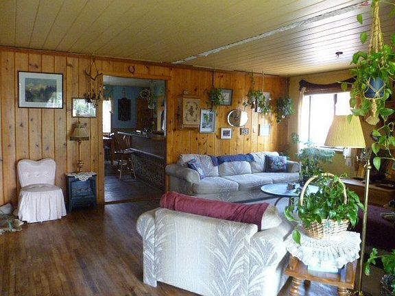Over 1/2 acre close to the amenities of the city. Wood floors, knotty pine, bay window and adorable country kitchen makes for a real feel of country charm. Sewing or computer room off of living room. Kitchen has breakfast bar, recessed ligtning, and large dining area. The wood inclusions are beautiful pieces of furniture. The basement is cozy and has a root celler. The shop is huge and insulated with wood stove. Garage is at the end of the shop. Lots of lighing and built in shelves. The work benches stay. Mature trees, fire pit, fruit trees and 2 garden spots. Front covered porch.You have to go in this home and shop to realize how adorable it is.