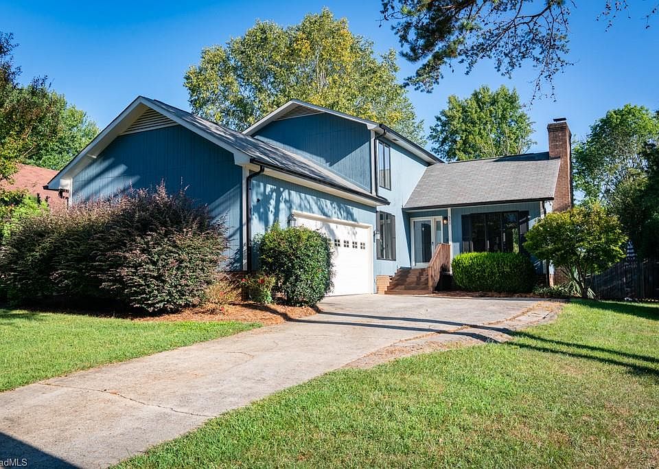 Contemporary styled home with a stylish modern look and a private pool to enjoy your summers. 3 bedrooms 2.5 baths with an office space. The bright eat-in kitchen has plenty of room to cook and enjoy meals. Living room has a two-story stone stacked fireplace and it's the main focal point. New flooring and interior paint throughout. Plenty of fenced in backyard space, spacious deck to grill on, or float around in the pool! Primary suite upstairs. Garage space with room for storage.