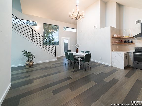 Absolutely STUNNING home,it has been completely renovated from the top to the bottom.Spacious kitchen boasts new cabinets,quarts countertops, decorative backsplash,pot filler,black Stainless Steel appliances ,Modern Farmstyle fixture selections & LED can lights added.Living /Dining combo has high ceilings, wood flooring.Has new AC, new Metal roof , iron staircase new windows,updated baths with wallmount faucets.You can enjoy hill country views from your oversized deck and patio.Minutes from Downtown Boerne