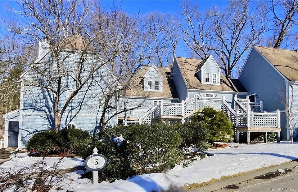 Comfortable & cozy ground-floor end unit at The Villas At Norwich Inn & Spa. A short walk from the parking lot, this move-in ready unit has NO exterior stairs! Beautiful tile flooring throughout; double stainless steel sink; full size electric range; quartz countertops; white cabinetry; ecobee ENERGY STAR certified smart thermostat provides remote control of heating and cooling from anywhere on iOS or Android devices; programmable keyless entry lock; wood-burning fireplace (currently has an electric fire log stand which can be removed); a walk-in shower (no tub to step over) and, wooded views from the private balcony. This peaceful sanctuary is just 1 mile from Mohegan Sun and 8 miles from Foxwoods, borders a public golf course, and is close to many outdoor attractions. The property boasts two outdoor salt-water pools (one is heated); two clubhouses – one with a salt water hot tub, a fitness room and saunas; laundry facilities in both clubhouses; manicured grounds; ponds; ample parking; and, a walking trail. Building 5 is ideally located: directly across from the main clubhouse and near the community mail house. For those wishing to have an income-producing property, this unit also has a well-established history on AirBnB.