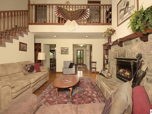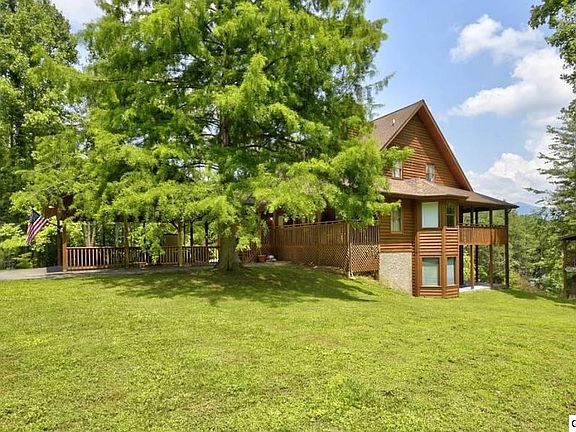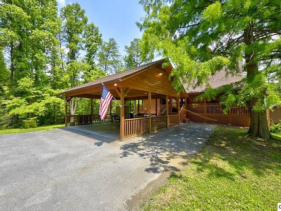 LOCATION, LOCATION, LOCATION! This massive 6BR lodge with breathtaking views is located within minutes to all the action of Gatlinburg, TN! Priced $90,000 under recent appraised value of $615,000! Being sold mostly furnished! Bring your imagination and this will be a show place! Currently accommodates up to 18 people. You will not find another property with this much space, easy access, and NO STEEP Roads and all city utilities. Very nice useable yard space with it sitting on 0.85ac with outdoor space for grilling, firepit, etc. Interior features include an oversized living room with soaring vaulted ceilings, bamboo wood flooring, and a woodburning stone fireplace. Spacious fully equipped kitchen with tile, a nice desk area, and an abundance of cabinet space! Dining room surrounded with windows to take in the beautiful views and the serene setting. Great room on main level also for entertaining. Bedrooms are very spacious and Master Suite features a private bath with jet tub. Gameroom with pool table and area to add a theatre room! Also, featuring bunk beds and an additional living room. So many possibilities as an overnight rental, second home, or permanent home with it being walking distance to schools and Mills Park. Also, only minutes to Rocky Top Sports World, Downtown Gatlinburg, the Arts & Crafts Community as well as the Great Smoky Mountains National Park, the community center, library, Mills Park and Trolley Stop. Grocery store and entertainment also right around the corner! Recent updates include inside paint, beautiful bamboo hardwood flooring in the main living area, porcelain tile in kitchen and baths, roof approximately 3yrs old. Cabin has been recently stained. Great property for groups, corporate retreat, or a large family. Covered wraparound porch with picnic table, and a lower level deck as well. Upgraded covered wood sided carport with parking for two cars. Add a hot tub and you're all set in this one of a kind property! This is a must see!