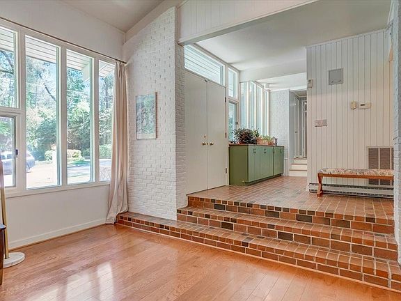 This stunning mid-century home boasts a spacious and inviting floor plan with ample room for relaxation and entertainment. The property features three generously sized bedrooms and 2.5 modern bathrooms. As you enter the home, you are immediately greeted with an abundance of natural light that floods through large windows, highlighting the beautifully maintained hardwood and brick floors. The high ceilings create a sense of openness and grandeur, making the home feel even more spacious than it already is. One of the most notable features of this home is the four season sunroom which is open and airy, making it a great spot to entertain guests. The build in bookshelves provide extra storage. The living area is perfect for cozying up with loved ones, with its charming fireplace. Storage space will never be an issue in this home, as there are tons of built-in storage options throughout the property! The private back deck is the perfect place to relax and unwind after a long day, and offers stunning views of the large fenced-in backyard!