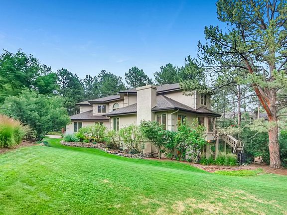 Stunning custom home on a great lot in Castle Pines Village. As you walk up you are greeted by a flagstone walkway with a fountain and beautiful landscaping. The main level has a large family room with vaulted 22' cathedral ceiling, a wall over windows allowing tons of light + great views of the trees and yard, and a stone fireplace. The kitchen is a chef's dream with plenty of space to meal prep and serve. It has double ovens, a 6 burner gas cooktop, and a warming drawer. There is a large redwood deck is accessible from 3 rooms making it great for entertaining or relaxing. Upstairs there are 3 bedrooms and 2 bathrooms. The master suite has a three sided fireplace with a sitting room, radiant heat in the bathroom floor, multiple shower heads, and a great closet system. The basement is setup for entertaining with a large projection screen, wet bar, exceptional wine room, and flex area. Walkout to the patio with a fenced dog run and yard. Much more to see!