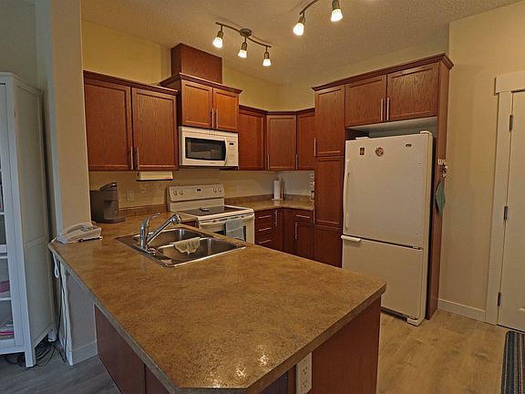 Welcome to adult living at its finest in Windsor Estates! Nicely upgraded with recent flooring and paint, this unit shows like new and has an over-sized covered west facing balcony that overlooks a treed area. The large windows throughout provide plenty of natural light. Spacious in-suite laundry/storage room with built in cabinetry as well! This amazing 55+ building is located just a couple of blocks from downtown Spruce Grove and offers guest suite, exercise room, car wash, dance floor, hooby room, party room, recreation area, and secured heated parking with lockable storage cage.