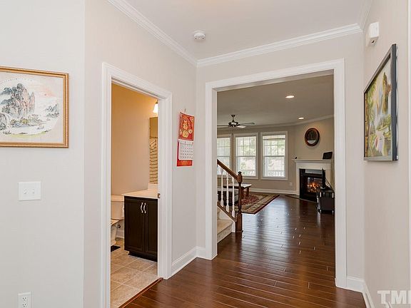 This beautiful home was built in 2017 and features engineered hardwoods on the entire first floor, a gourmet kitchen, bedroom and full bathroom on the first floor, screened porch, massive master bedroom, bathroom, and closet, could be 5 bedrooms or 4 bedrooms plus a 3rd floor bonus with full bath. Only attached by a storage unit in the back so it lives like a single family home with all lawn-care included in the HOA!