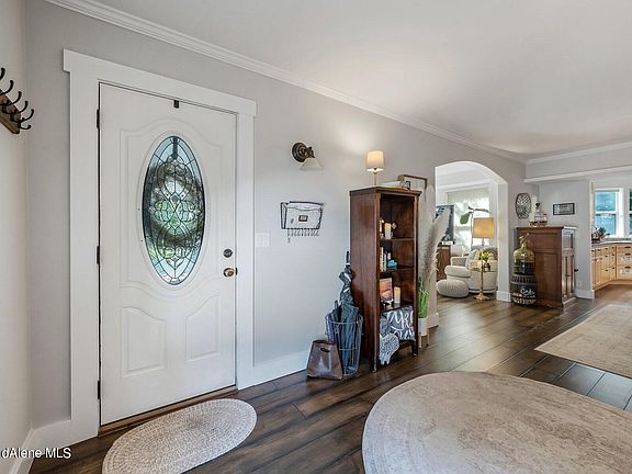 Price Improvement! Now pre-inspected and sewer scope inspected. This 1910 home has been beautifully updated in 2021 and is nestled in one of Coeur d'Alene's prime real estate neighborhoods. 4 bedroom, 2 bathroom home has the primary living space on main level that creates a nice open floor plan. The living room boasts a gas fireplace that provides cozy ambience and warm heat for those long winter nights. House has newly remodeled bathrooms and updated paint and flooring in every room inside and outside the home. Newer landscaped yard with sprinkler and drip systems in both front and back, fully fenced yard with 6 garden boxes. Updated electrical with new fixtures and dimmers throughout the home. A/C will keep you cool on those hot summer days. Drive through garage with alley access. Welcome home to Sanders Beach!