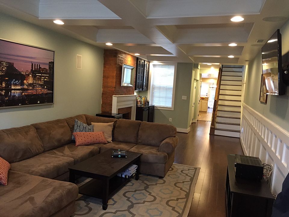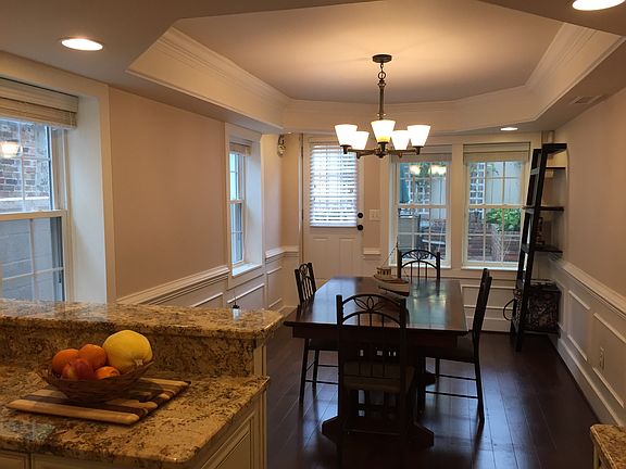 No expense spared in this fully renovated, upscale 4 bedroom, 3.5 bath townhouse. Located on a scenic tree-lined street in the heart of Fells Point, just 3 blocks off the waterfront. With 2,000 sf on three levels, the property is completely updated with a gourmet kitchen, new hardwood floors, new energy efficient windows, new stainless appliances, coffered and tray ceiling with 3-piece crown molding, recessed lighting throughout, front-load washer & dryer, programmable thermostat (new central AC/heating system), 5.1 in-wall surround sound speaker system, butler's pantry, plenty of closet space, and much more. The first floor consists of living room, kitchen, powder room, and dining room, leading out to a private back garden. The second floor has a master suite and master bathroom, two more bedrooms, another full bath, and laundry (located convenient to all bedrooms). The third floor has another bedroom with a full bath. Available for rent August 1st Tenant pays utilities