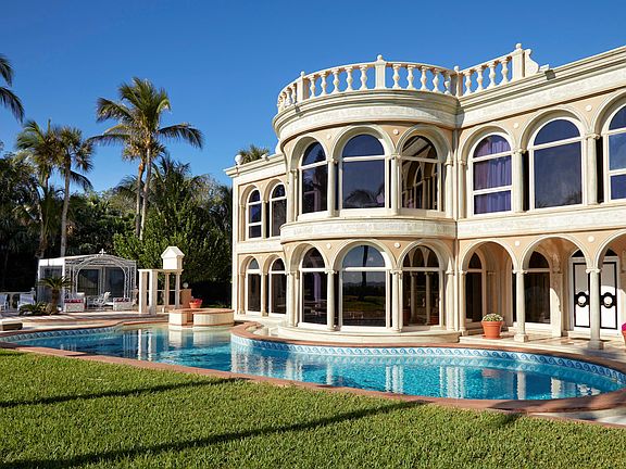 Perched on over 5 acres of prime oceanfront land on Jupiter Island and hidden behind a veil of towering palm trees and perfectly manicured lawns, lies a marriage of five meticulously crafted buildings. The natural elevation of this grand property allows for unobstructed views of 262 feet of private, pristine beach. Entering the two-story iron gates, one comes upon the majestic main Villa, notably inspired by 12th century Italian design. Guests are invited to find solitude in one of three enchanting Tower Apartments, or in the stately Guesthouse by the beach. Follow a flower lined descending path featuring a cascading fountain and mosaic pool, and you'll find a wellness oasis complete with steam room, sauna, and Turkish bath. Dozens more water features and statues are strategically placed 2021-05-13