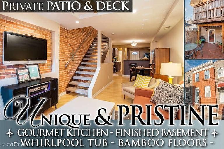 PRISTINE CANTON ROWHOME WITH OPEN FLOOR PLAN & 3 FINISHED LEVELS! Main level w/ Bamboo floors, living room w/ exposed brick, dining area, kitchen w/ breakfast bar, granite counters & ss appliances, Master suite w/ full bath w/ whirlpool tub and access to private rear deck, 2nd bedroom w/ exposed brick & hall bath, finished lower level with half bath & private rear patio!