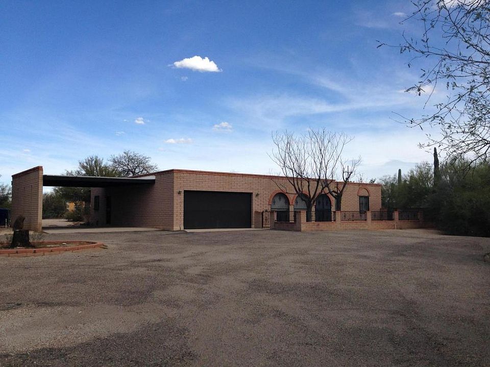 Well built slump block 4 bedroom home with guest home that sits back on 2.4 acres. Main house has 2 car garage and carport! Formal living rm is the only step down in this home. Family room is next to kitchen. nice size hallway and bedrooms. Off the kitchen going to carport is a bonus rm and to garage is big laundry room. The one bedroom guest house has an open dining and living room with wood burning fireplace. The kitchen is good size and open. The lg window looks to pool and Catalina Mts. Hugh Garage attached to GH has Workshop and Storage room! The water to this home is Halcyon Acres Water Users Assoc. Owners says its the best water!! Conventional fenced Pool has diving board. Great house that just needs some updating!! One owner home.