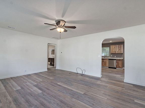 Welcome home to this cute, wonderfully Remodeled home. Huge mature trees shade the majority of the yard Complete remodel was finished in Dec 22. including all new plumbing, HVAC, Roof, garage door, kitchen, bathroom, windows, siding, gutters, floors and updated Electric. As close to a new construction as it gets. Walking distance to the elementary school and play ground. Large Fenced in back yard with a handy storage shed!