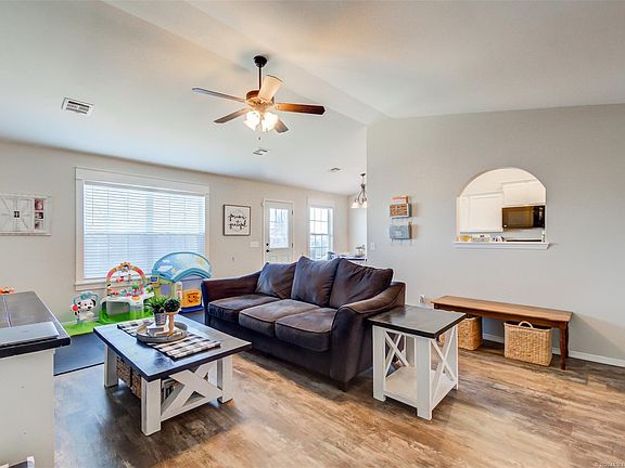 Charming, move-in ready home with numerous improvements throughout! Features bright kitchen with fresh white cabinets, new plank flooring throughout living areas, upgraded bathrooms with stained wood top vanities and new fixtures, new paint, vaulted and tray ceilings, separate laundry room and so much more! Includes 1 year home warranty! Located in "The Crossing" near schools and shopping. Qualifies for USDA 100% financing!
