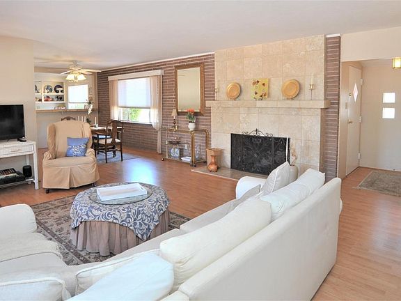 Mid Century modern gem with GUEST HOUSE. 3-Bedroom/2-Bath Main House PLUS detached 1 Bedroom/1-Bath GUEST HOUSE with additional HOME OFFICE and 1/2 bath. Located in highly desirable Wilshire Heights known for it's wide streets, large lots and a convenient location you can create your own live/work environment, multi-generational living or live in one home/rent the other. This pristine home is an entertainer's dream with a gorgeous updated gourmet kitchen complete with Travertine counters, newer appliances and cabinets, spacious flowing floor plan, loads of natural light, laminate wood flooring, and a large covered patio perfect for enjoying outdoor living. Exposed brick walls and tiled bathrooms retain the charm of the era while the Travertine fireplace and neutral tones enhance the sophistication of the home. Guest house was designed with function and versatility in mind using 2x6 construction and impeccable taste and attention to detail. Separate entrance for guest house and home office give you endless possibilities.
