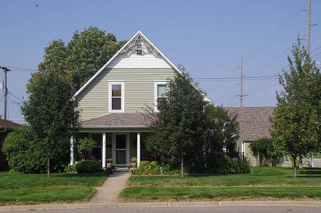 Adorable open front porch with a porch swing. Lots of original hardwood flooring. Large living room with lots of sunshine. Very cute kitchen was remodeled in 2014. Granite counter tops, white cabinets, breakfast bar and stainless steel appliances. Formal dining room has built-in china cabinet. Back porch has laundry area. Main floor has 1 bedroom and a full bathroom. Upstairs has 2nd bathroom and 2 bedrooms. Plumbing has been updated. Fenced-in back yard, detached single garage and a barn that has an oversized single car garage stall, work shop area and lots of storage. New siding on barn in 2021. Move-In Ready!!!!