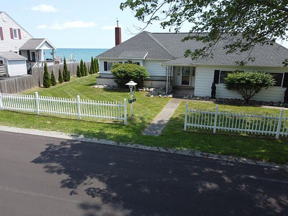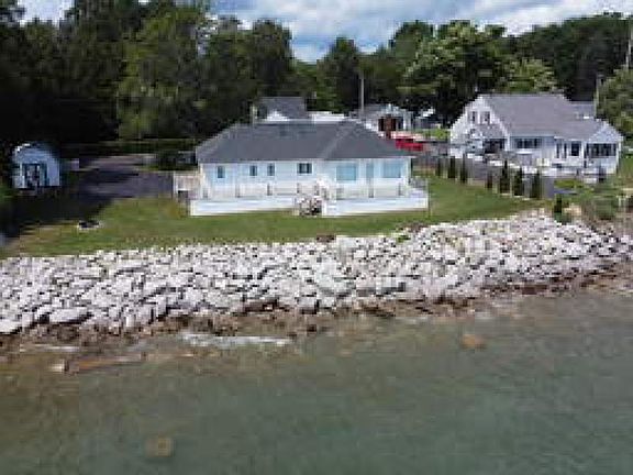 This 2 bedroom / 2 bath home has 1628 square feet of living area featuring large living room w/fireplace and panoramic views of lake from nearly every room. Floor plan could easily be reconfigured for 3-4 bedrooms. Home has 130' of frontage and brand new (50k) quarried limestone seawall and sprawling raised deck for enjoying lakeview. This home has a very private feel being last home on street with 400' of buffer before state park and nature trails. Harbor, State Park swim beach and downtown are a short walk away...Be sure to watch virtual (aerial) tour of this property at: https://www.youtube.com/watch?v=bC_xY1nCbYY&t=21s