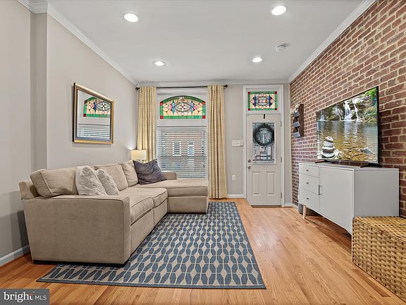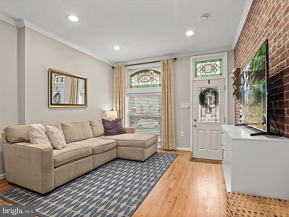 Discover this highly sought-after Canton colonial, perfectly situated within walking distance to Patterson Park, shopping at Canton Crossing, harbor access at Anchorage Marina, and a variety of dining options. Step into this charming brick and stained glass row home and experience an open floor plan featuring crown molding, custom blinds, a brick accent wall, and gorgeous hardwood floors. The kitchen boasts ceramic tile flooring, stainless steel appliances, pullout drawers, a center island with a breakfast bar, granite countertops, and access to the spacious fenced-in deck—ideal for entertaining. The primary bedroom suite features a vaulted ceiling, hardwood floors, a brick accent wall, a walk-in shower, and a soaking tub, creating a tranquil atmosphere. An additional bedroom with original hardwood floors that continue from the primary bedroom, and a hall bath complete the upper-level sleeping quarters. The fully finished lower level offers endless possibilities, whether as an additional bedroom, an office, or a media center for enjoying your favorite films. Major commuter routes include I-395, I-83, and I-95, providing easy travel access. Don't miss this exceptional opportunity in Canton! Updates: New Roof 2024 , New Hot water heater 2018. New Microwave 2024 , Recessed lighting , Ceiling fans