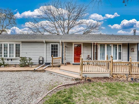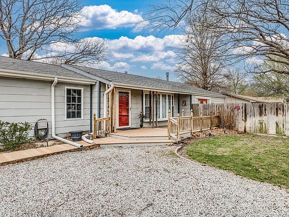 3 bed, 2 bath ranch home with oversized 2 car garage, that sits on nearly a half-acre corner lot. Home is located within the Goddard School district in the desirable Callahan Addition. The circle driveway provides ample parking and the 28 x 22 detached garage/shop with opener, is a perfect fit for the car enthusiast or the person just needing some additional work or storage space that includes heating and cooling! The fully fenced yard has a sprinkler system and two beautiful koi ponds with a pump, ready to open for Spring. The living room offers a bay window and hardwood flooring that continues through to the dining area. Kitchen consists of updated backsplash, eating bar, pantry and all appliances remain with home. All three bedrooms have had fresh new carpet just installed and the master bedroom includes a bay window and dual closets, including a walk-in. The recently updated main hall bathroom has a sunken jetted bathtub/shower, solid surface vanity with backsplash and tile flooring. The spacious family room includes a fireplace, wood laminate flooring, a wall bench with storage and French doors that lead to a fully fenced concrete patio. The separate laundry room/full bathroom has a seated walk-in shower, full sized sink with ample counter space/cabinets and tile flooring. Composite decking runs along the front and back of the home, for plenty of space for outdoor furniture to sit and enjoy the beautiful sunrise and sunsets. Property is on a complete well with a water softener and purification/filtration system. A charming she-shed that includes electrical, finishes off this beautiful home with a huge lot that offers endless possibilities! Roof, siding, deck and AC are all less than 5 years old. The riding lawn mower is included with the home!