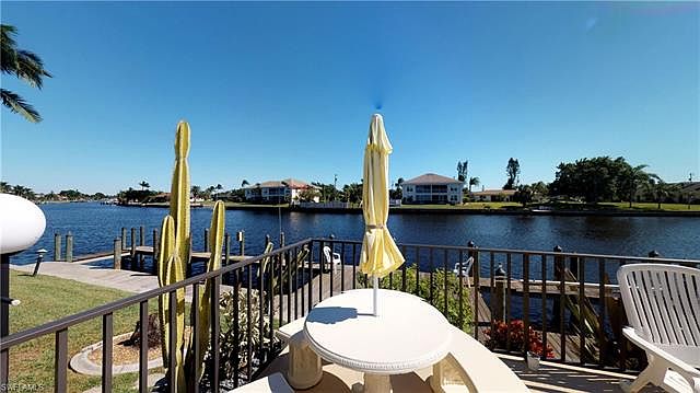 Welcome to the Club Harbour community. Explore & discover the entire condo unit by clicking on the link to the 3D Virtual Walk-Around, look deeper than a virtual tour. This 2nd floor, waterfront condo with impact resistant windows is located on the 195 ft wide section of the Rubicon Canal. The freshly painted interior of the unit has a vaulted ceiling & soothing views overlooking the canal and the solar heated pool. A disappearing double slider leads out to your lanai which has a spiral staircase leading down to the pool area for outdoor waterside lounging & entertaining. The master bedroom has views of the pool and canal, room for a king size bed & an ensuite bathroom with a walk-in closet & access to the lanai. Interior also has a wet bar & inside laundry room. Covered carport with one assigned parking space in front of the unit along with another small storage space is included. HVAC was replaced summer of 2017. The building updates in 2017 include exterior paint, staircases, lanai screen doors, frames & screens. This is NOT a 55 plus community, 10 units. Take advantage of this opportunity to own waterfront property on a quiet street with quick access to downtown Cape Coral.