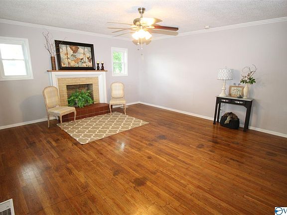 Enjoy country life in this Adorable, updated brick rancher situated on almost an acre gorgeous lot with mature trees, covered front porch, attached garage plus detached garage/ workshop. This charming home has new HVAC, metal roof, appliances, energy efficient windows, paint, new garage door, remodeled bathroom, light fixtures, septic pumped. Original hard wood floors, tile in kitchen & bath! 10 minutes to super Walmart and dining in Hazel Green, approx 30 minutes to downtown Huntsville, hospitals, 13 min to Sharon Johnson Park. Perfect starter home or downsizing!