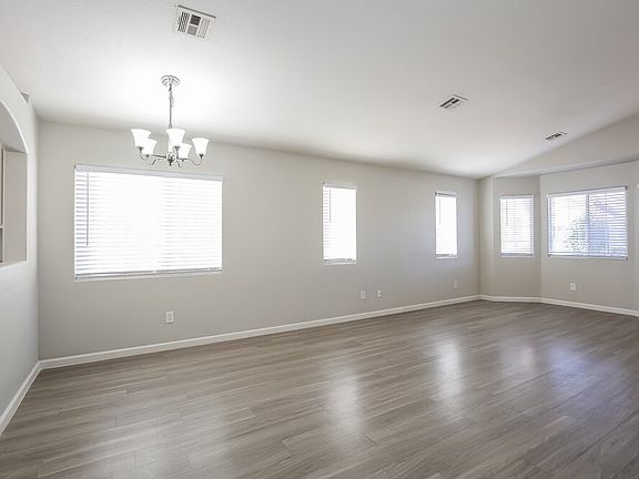 Please note, our homes are available on a first-come, first-serve basis and are not reserved until the lease is signed by all applicants and security deposits are collected. This home features Progress Smart Home - Progress Residential's smart home app, which allows you to control the home securely from any of your devices. Want to tour on your own? Click the "Self Tour" button on this home's RentProgress. A streamlined exterior, desert xeriscape in the front, and fenced backyard highlight this three-bedroom, two-bathroom renovated rental home in North Las Vegas. Vaulted ceilings and luxury vinyl floors grace the living room. The open design plan continues into the dining area, which offers a partial wall with a cut-out arch and a pendant light fixture for illuminating nighttime meals. In the kitchen, stainless-steel appliances and updated whitewashed cabinets offer space for your ingredients and cookware. Sleep well in the master suite, which features vaulted ceilings and a plant ledge. The suite's bathroom has a separate dressing area and a vanity with dual sinks. Schedule a tour today to see this beautiful home for yourself.