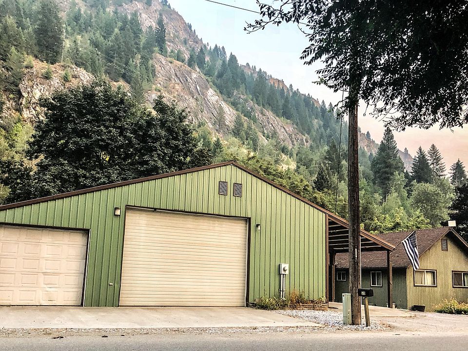 Spacious 4 bdrm 3 bath home sitting on 1.37 acres on the edge of town. Main floor features an updated kitchen, large living room, laundry rm with 3 bdrms with 2 baths. Additional bedroom, bathroom and family rm with a wet bar downstairs. Wood fireplaces on both levels. Huge backyard with an amazing fire pit, half basketball court, fenced garden, and a water feature. Enjoy the privacy of the mountain side backing the property. Store all of your toys in the 30X50 shop. Shop includes heated flooring, office, bathroom, storage rm as well as a mechanics pit. This home has so much to offer, it's a must see!
