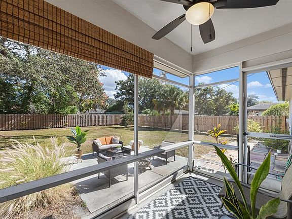 The House is four miles from famous Pier 60 and the sugar sands of Clearwater Beach. This light and bright 4 bedroom, 2 bath block home sits on a fenced oversized lot in a non-evacuation zone. Covered front porch welcomes you and provides the perfect perch for watching the world go by. As you step inside, notice the wood floors, high ceilings and light filled open living area. Kitchen fully renovated in 2021, with white shaker cabinetry and quartz counters. The large island offers plenty of prep and seating space for entertaining. Primary bedroom has a true ensuite bath with updated vanity and vintage walk in shower. Bonus room with a table tennis table and laundry area. Sliding doors provide access from dining area to a covered, screened back porch looking out on the patio and backyard. Fenced yard and yes - there is room for a pool! Comfortable space to create your outdoor living dream hardscape. Directly across Gulf to Bay Boulevard from Crest Lake Park's splash pad, boardwalks, playground, dog parks, and the Florida Veteran's Memorial. Two miles to downtown Clearwater with The Sound, Clearwater's new amphitheater venue at our urban waterfront Coachman Park, and the great food and craft cocktails in the Cleveland Street District. A mile from the City Of Clearwater's almost - completed Mercado District, with a public plaza envisioned to host food trucks and live music. Clearwater's Icon, the Dairy Kurl ice creamery and a Taco Truck are steps away! Zoned for Plumb Elementary. This charming home has convenient access to all the beauty and adventure that keeps people coming back to enjoy their best Florida life. Appliances are 2021. Roof permit 2015. HVAC 2025. This property will come partially furnished.
