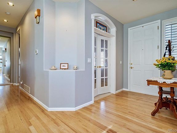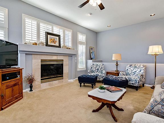This home embodies Colorado living and is situated on a peaceful lot in the Fairways at Plum Creek. The flexible ranch style floor plan has all of the finishes and conveniences you desire. Enjoy an open floor plan with plantation shutters, fresh paint on the main level, hardwoods and stainless appliances in the kitchen. The master suite includes a tray ceiling, large walk-in closet, 5 piece master bath with Euro glass shower and marble tile. The finished basement, with additional bedroom and full bath, allows for multi-generational living options or privacy for guests. This basement also includes a bonus room for use as flex space, fireplace, an oversized living room with dry bar allowing for the flexibility in living and entertaining that many desire. Multiple outdoor living spaces include: spacious deck off of living room (partially covered) on yard level, and front alcove with serene seating area. 2 car garage with storage cabinets and organization shelving. Convenient access to I-25 yet feels a like another world. Please come and explore this impeccably maintained home today.